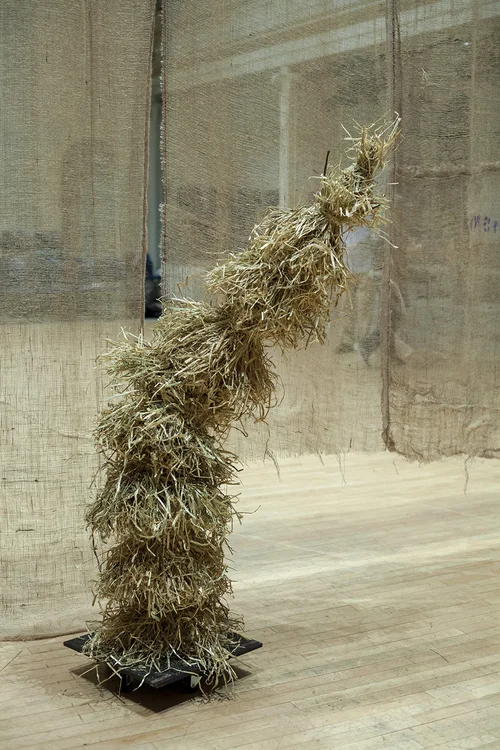 Dance Ultra HD Video 21:42 min. with Plexi Sheet, Copper wire sculptures, Video HD: Google docs 05:01 min. , Video HD: Text 10 min., Straw Sculptures, Plexi Sheet and archival paper documents.